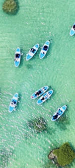 ダイビング、シュノーケリング、バナナボートをはじめとするマリンアクティビティや、パラセーリングで空中散歩など、青の世界に包まれながら日常では味わえない遊びが堪能できます。
